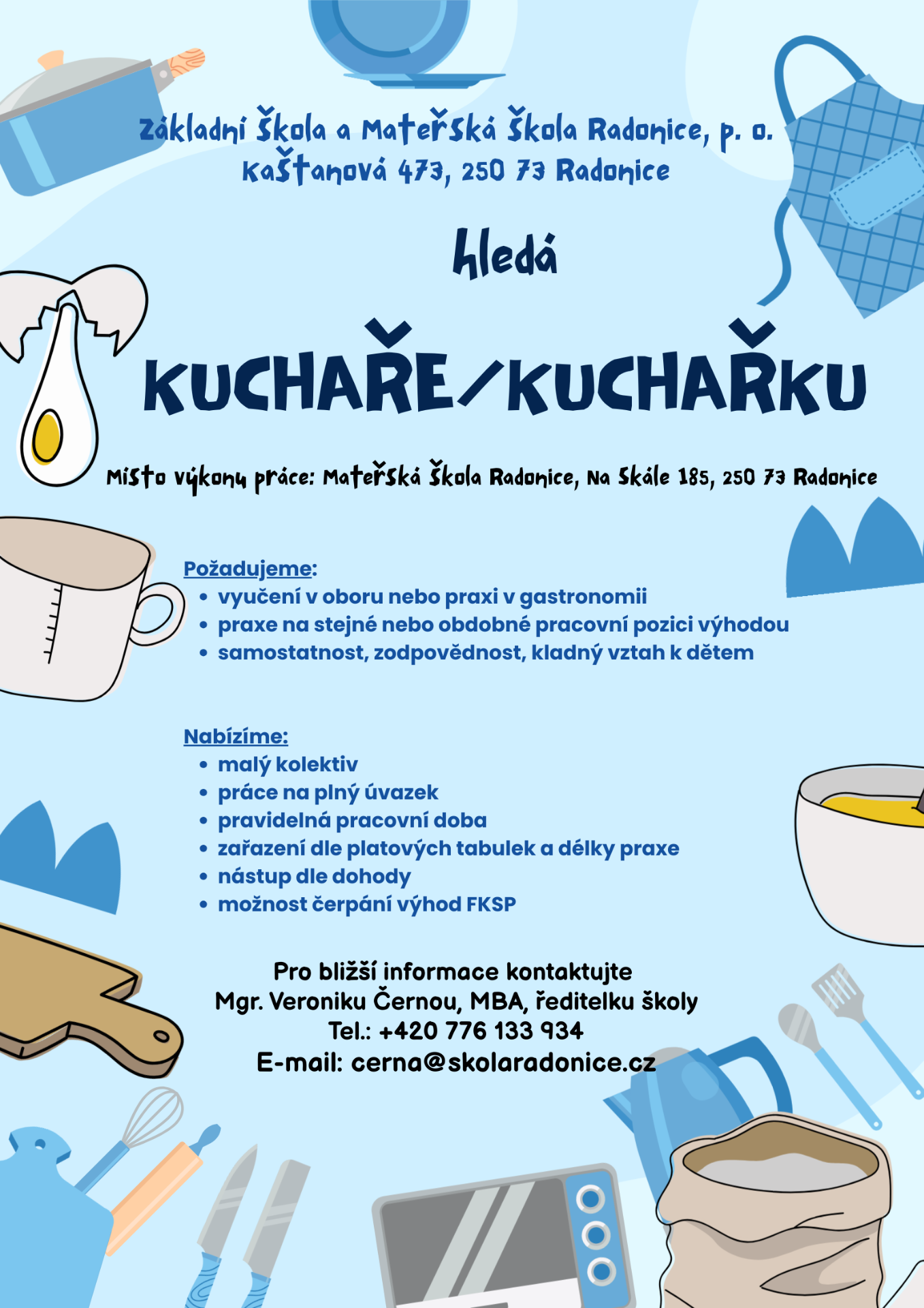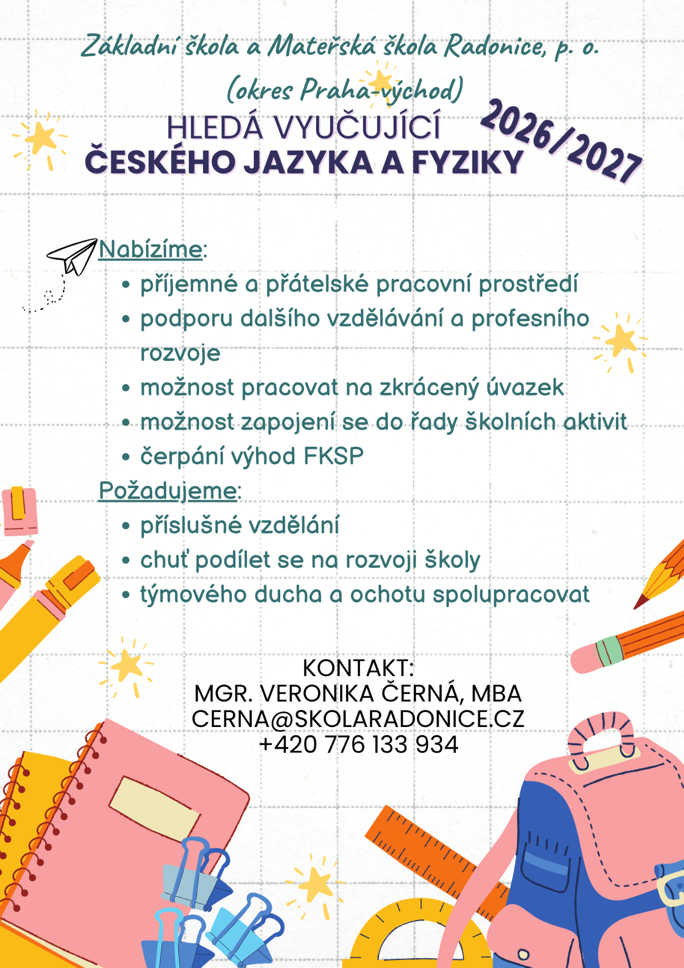 Pokud máte zájem, můžete nám poslat svůj životopis na e-mail: cerna@skolaradonice.cz (mailto:cerna@skolaradonice.cz).